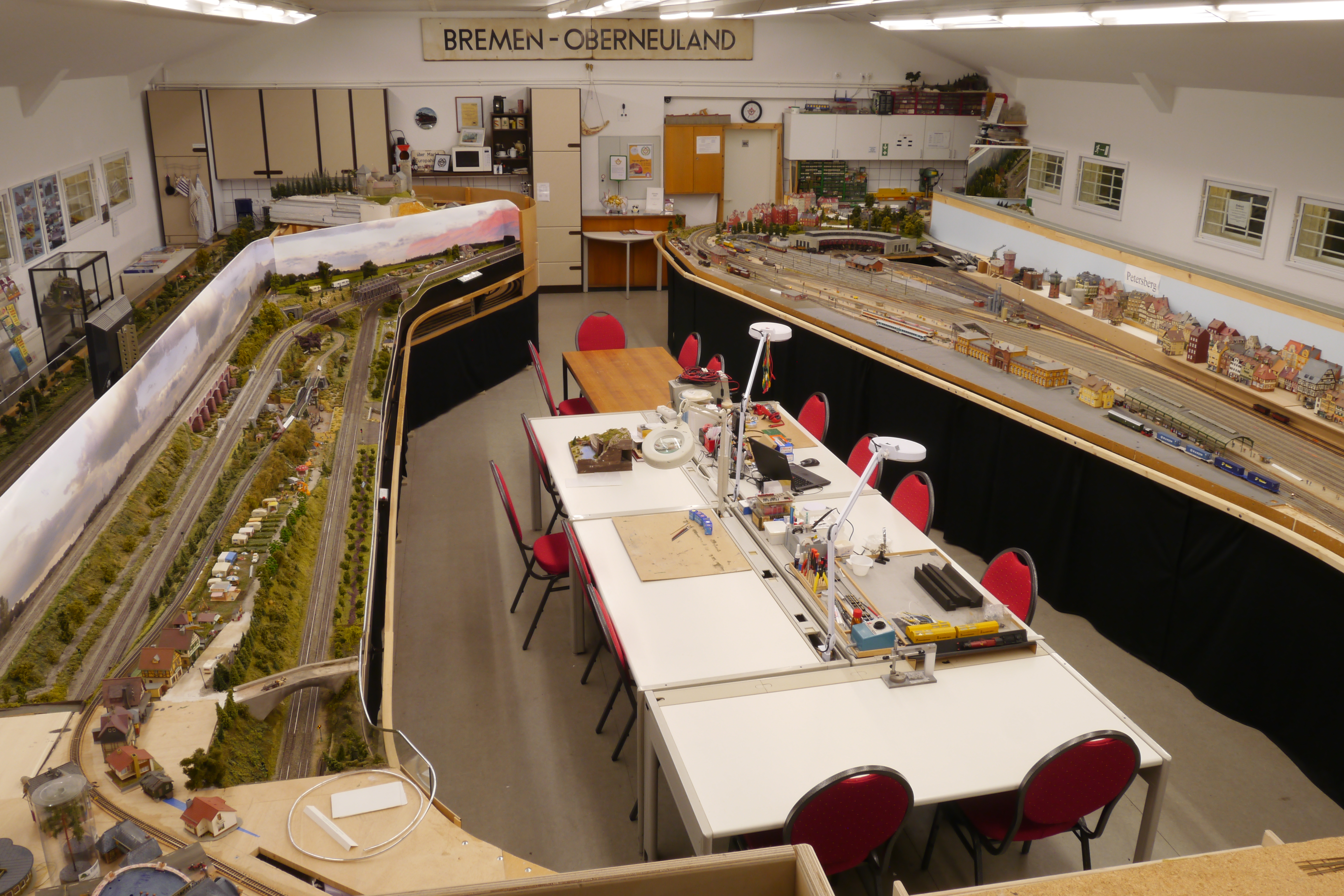 Für den Gleisbau wurde überwiegend Roco-Line ohne Bettung (10°-Weichen) verwendet, die maßstäblichen Weichen und EKW im Bf. Oberneuland entstanden im Eigenbau, im Bf. Bruchhausen-Vilsen kommen Produkte von Roco, Tillig und Bemo sowie Eigenbauten der Dreischienenweichen zum Einsatz. |